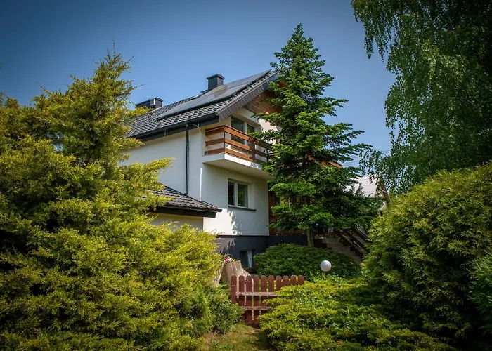 Kaszubski Sen med 2 sovrum, som ligger cirka 11 minuters promenad från Plaza Wiele, erbjuder cyklar och ridturer. Gästerna kan delta i badminton, basketboll och volleyboll i den här villan, som ligger ungefär 10 minuters bilresa från Jezioro Wielewskie.